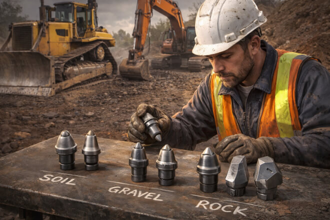 Application Type: Tools like trenchers and graders require carbide tips designed to withstand impact, while excavators may require tips optimized for cutting through soil and rock.
