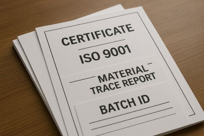 Material certificates for each batch