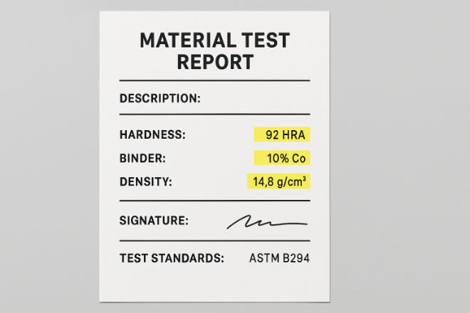 It gives assurance that every component — from tungsten powder to binder ratio — is exactly as specified.