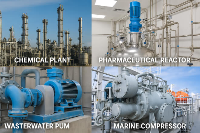 Marine pumps: WC provides reliability under vibration and saltwater corrosion.