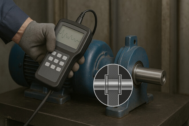 Monitor vibration levels in rotating equipment regularly using a vibration analyzer.