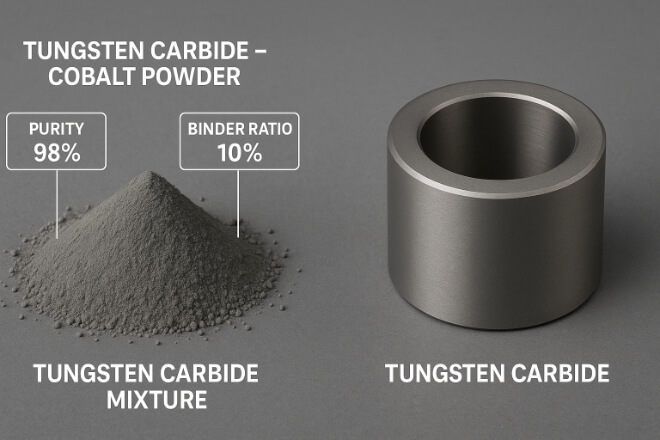 The largest cost driver is the tungsten carbide powder itself. It’s a blend of tungsten carbide (WC) particles and a metal binder such as cobalt (Co) or nickel (Ni).