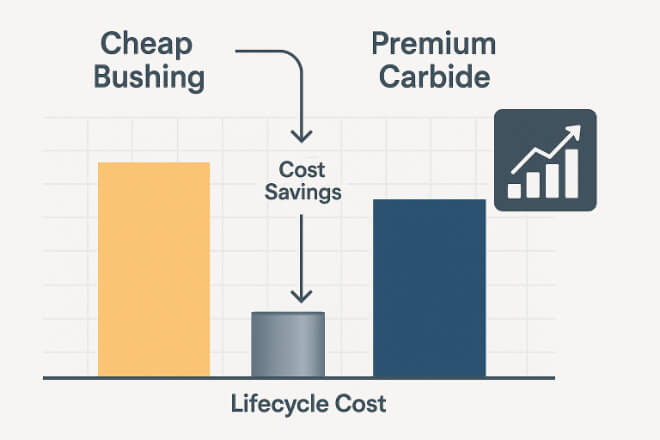 A cheaper bushing that wears out quickly can cause frequent shutdowns, seal leaks, or shaft wear — resulting in far higher repair expenses.