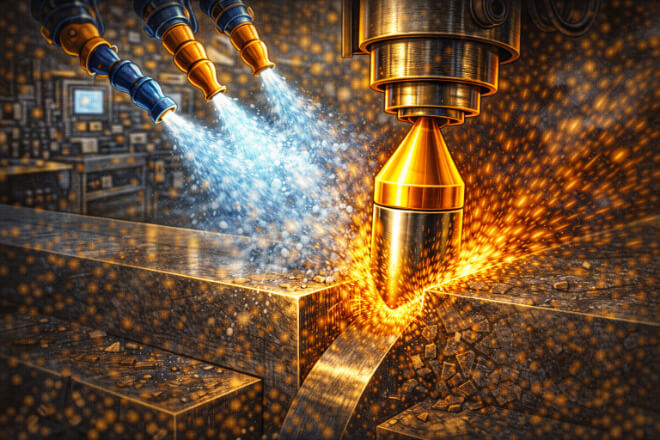 Proper cooling and lubrication reduce friction, dissipate heat, and prolong the life of the cutting tool.