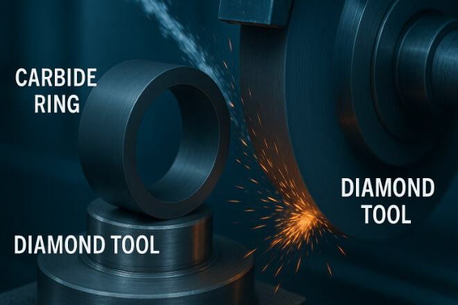 After sintering, the carbide blank is extremely hard, so diamond tools or CNC grinding machines are used to achieve preliminary dimensions.