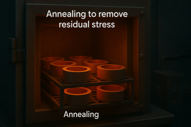 Before final finishing, the rings undergo stress-relief annealing to remove any residual stresses caused by grinding.