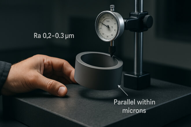 At this stage, tolerances are moderate, typically within ±0.05 mm, leaving stock for fine lapping later.