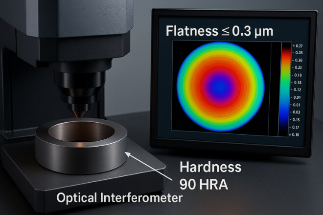 Lapping is where carbide seals achieve their functional excellence. It defines the seal face flatness, smoothness, and sealing performance.