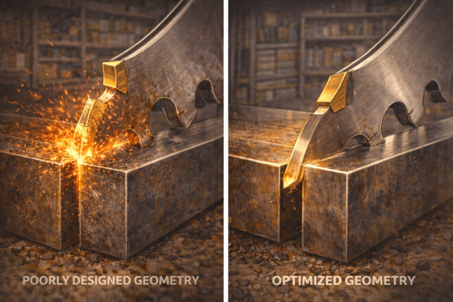 Choosing the right geometry for the material being cut ensures that the blade performs efficiently and has a longer tool life.