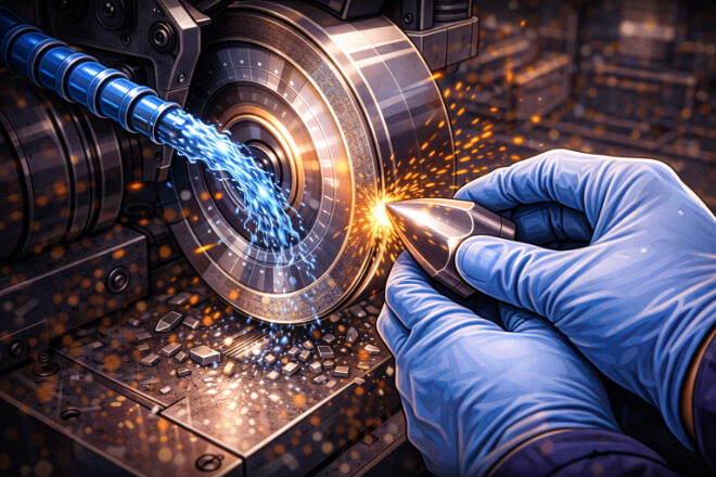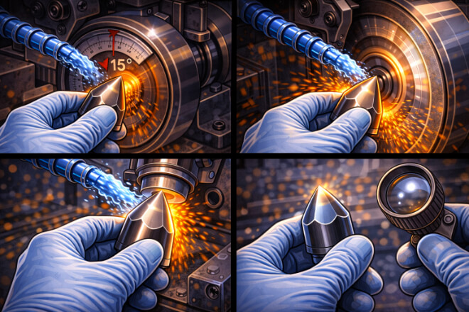 Finish and Clean: Once the tip is sharpened, remove it from the machine and clean it thoroughly to remove any remaining coolant and debris.