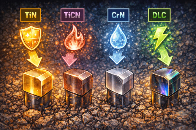 DLC coatings offer superior hardness and low friction, making them ideal for reducing wear and increasing the tool’s lifespan.