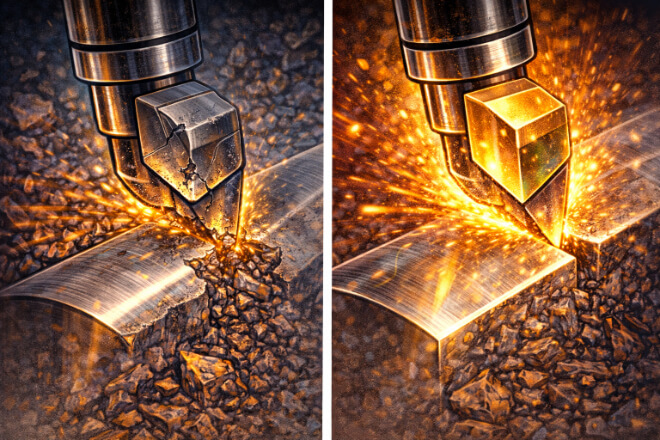 These coatings create a barrier that helps the tool withstand higher temperatures without losing its hardness or strength.
