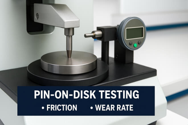 Pin-on-disk test: Measures friction coefficient and wear rate.