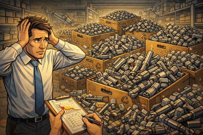• Wasted Resources: Storing excess inventory may lead to wasted resources, especially if there’s a change in the tools required or a shift in production needs.