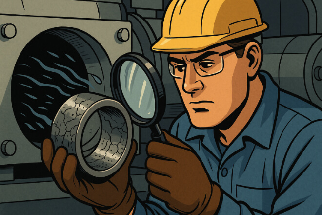 • Pitting: The collapse of vapor bubbles creates small pits on the bushing surface, weakening it over time.