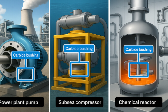 In all these cases, tungsten carbide bushings reduce downtime, extend service intervals, and improve machine reliability.