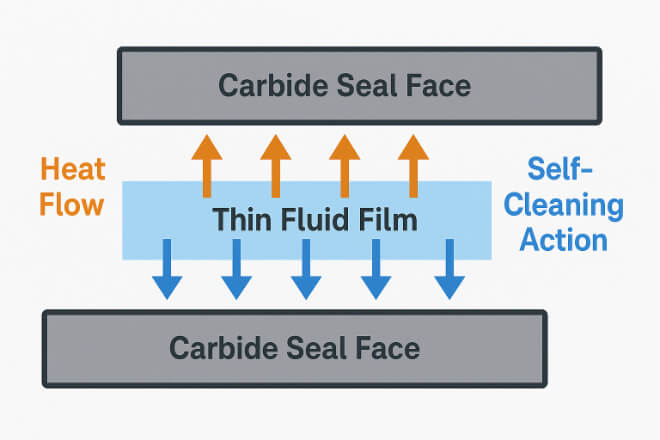 Carbide’s high thermal conductivity ensures that this film remains stable, preventing hot spots that could cause vaporization or dry running.
