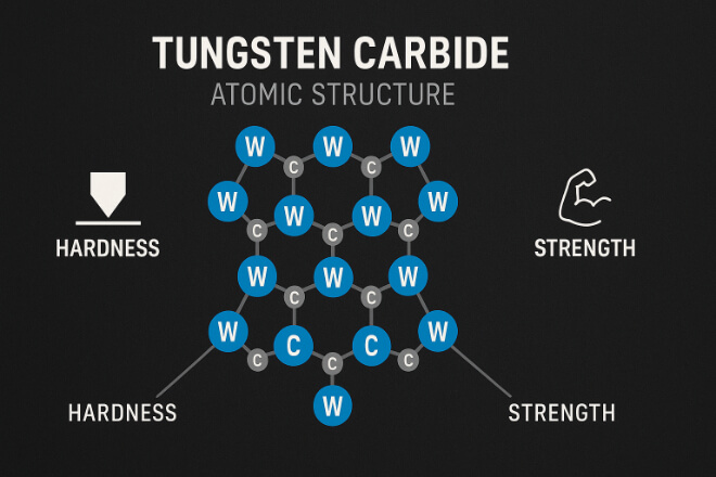 Tungsten carbide (WC) combines tungsten particles and a metallic binder (usually cobalt or nickel).