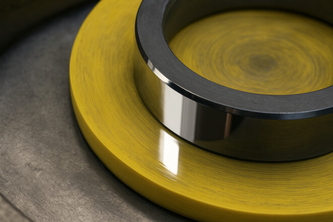 Polishing refines the surface after lapping to achieve the mirror-level finish.
