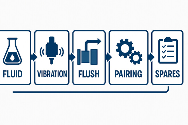 Fix: Run a short site survey before final spec — fluid sample, vibration scan, and spare policy check.