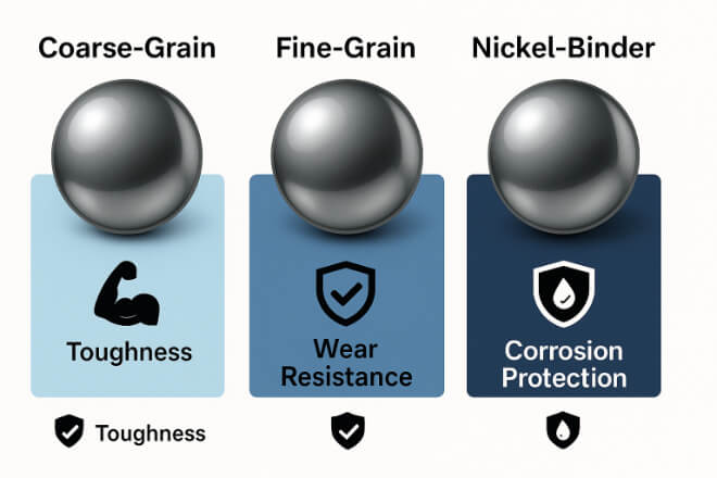 For example, in corrosive chemical applications, nickel-binder grades are safer, while in mining, cobalt-binder grades are often preferred for toughness.