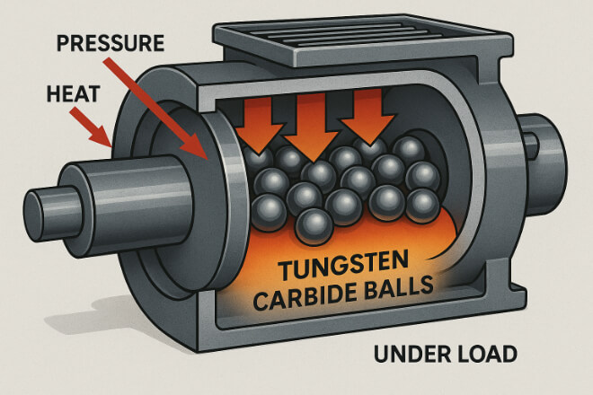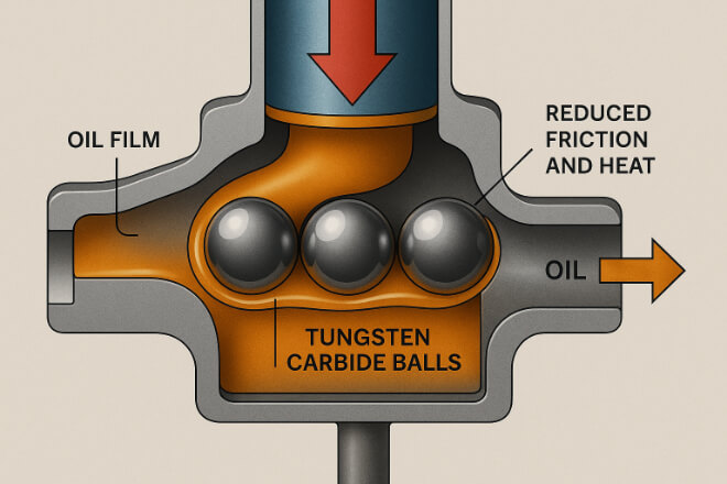 In high-stress applications like pumps and valves, a lack of lubrication can quickly damage carbide balls.