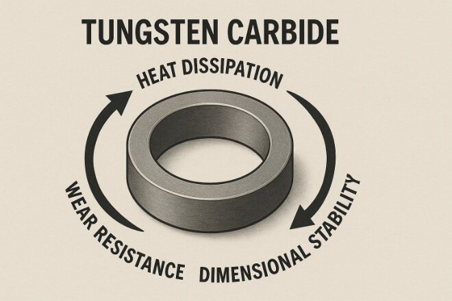 Carbide conducts heat efficiently away from the sealing face, preventing local overheating.