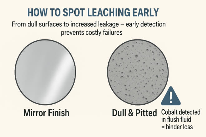 Finding cobalt or nickel ions in the flush or process fluid is direct evidence of binder leaching.
