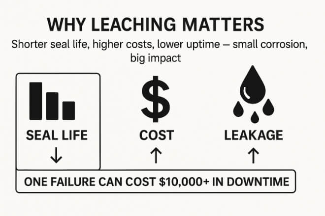 Leaching may not look dramatic at first, but once it starts, it steadily undermines seal reliability.