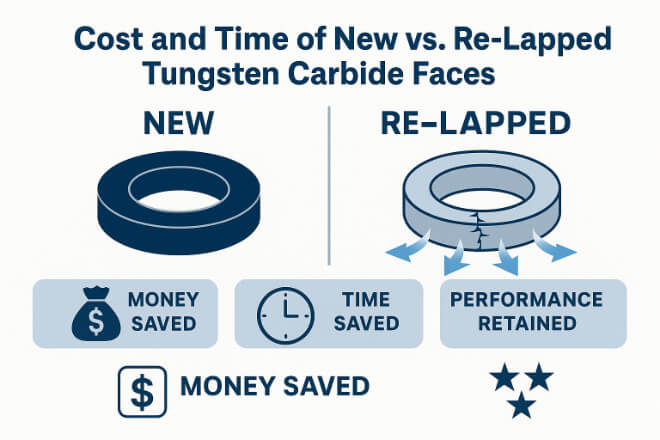 Re-lapping and re-use of tungsten carbide seal faces can be a smart cost-saving practice — but only when done under controlled inspection and process standards.