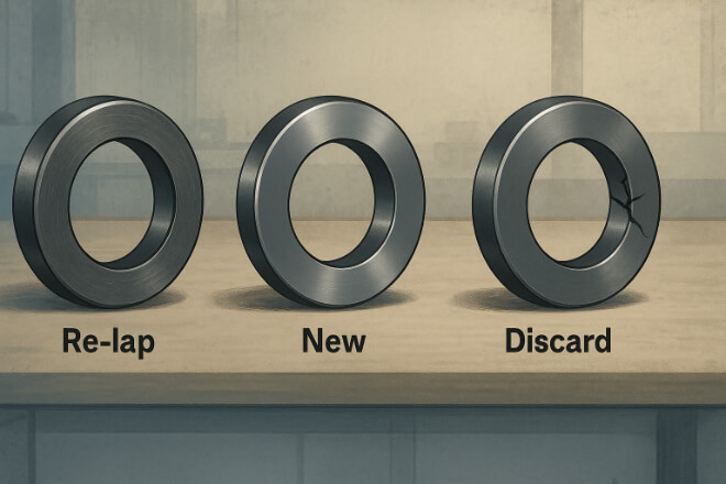 | Condition | Re-Lap? | Minor scratches, no cracks | Yes | Light wear, no distortion | Yes | Edge chipping or cracks | No | Corrosion or leaching signs | No | Urgent turnaround needed | Yes |