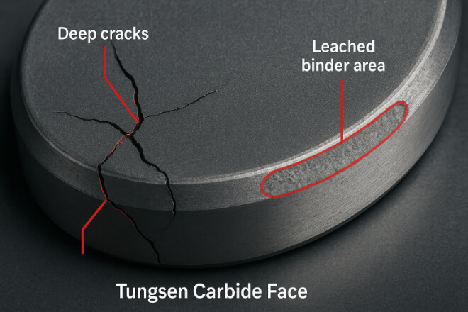 Once a carbide face has internal cracks, lapping cannot fix it. The integrity is lost, and it may fail again under stress.