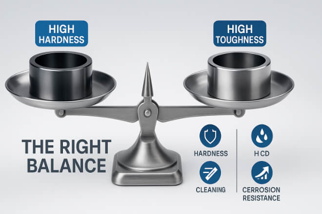 The chart below shows how this affects độ cứng, độ dẻo dai, Và wear resistance.