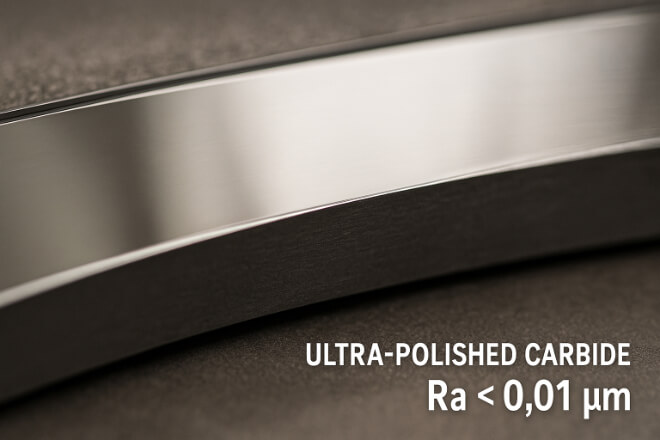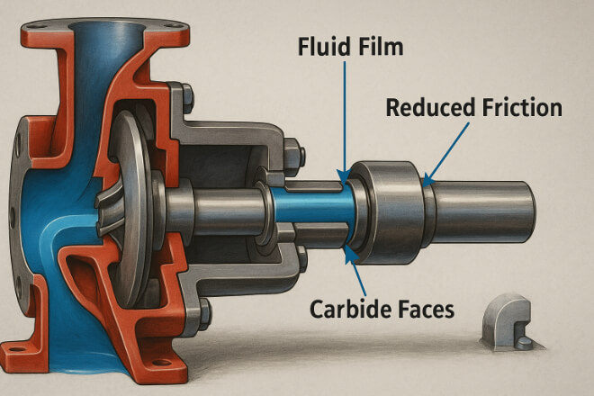 In mechanical seals, the surface finish of carbide faces affects not only leakage control but also lubrication retention.