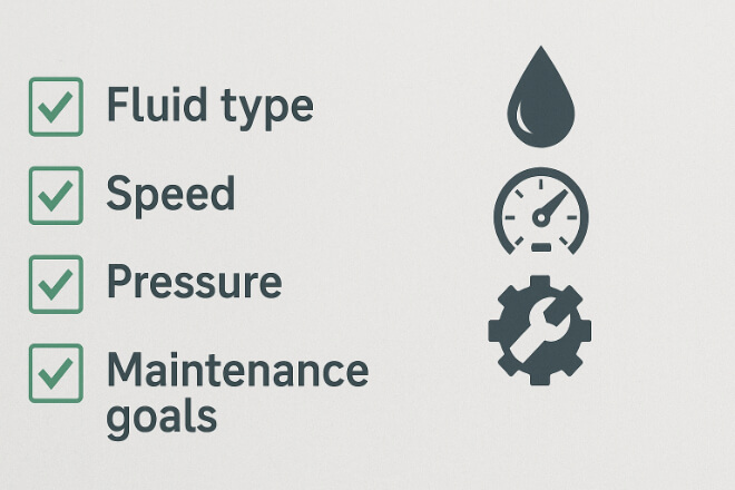 Ứng dụng tốt nhất | Clean fluids, high speed | Variable speed, abrasive fluids |