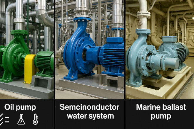 Pharmaceutical or semiconductor pumps requiring ultra-clean conditions.