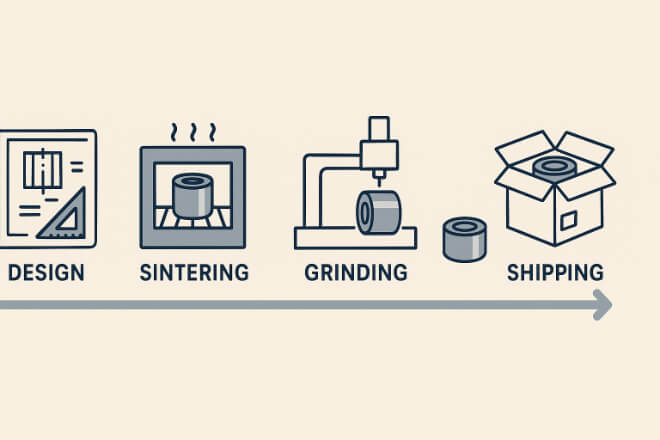 Because of this, each batch requires tailored production, from powder preparation to sintering, grinding, and inspection.