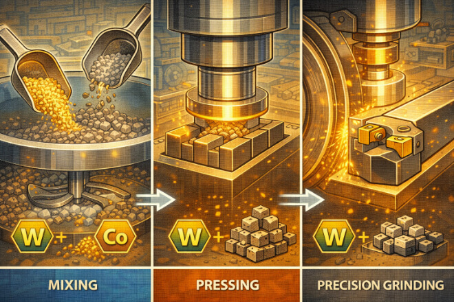 Tungsten carbide is made by combining tungsten and carbon at high temperatures, and variations in this mixture can impact the tool’s properties and cost.