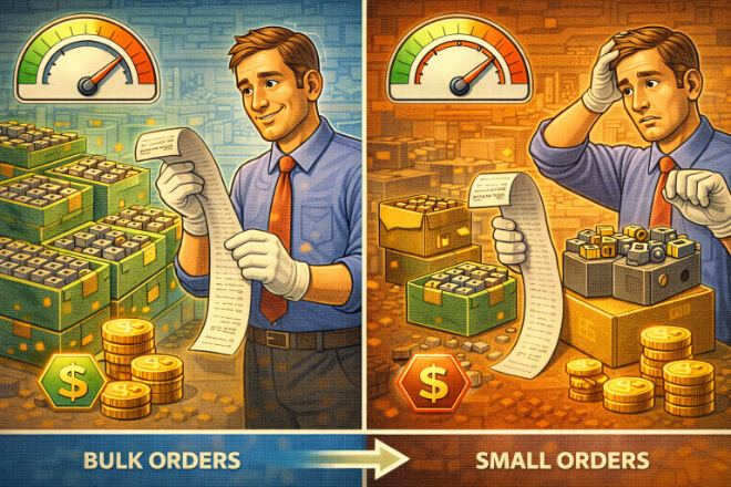 On the other hand, small orders or one-off purchases may come at a higher price per unit due to the lack of bulk production and the added administrative costs.