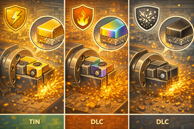 Common coatings for tungsten carbide tips include titanium nitride (TiN), titanium carbonitride (TiCN), and diamond-like carbon (DLC).