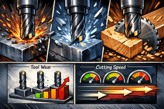Softer materials like wood or plastic put less stress on the tool, while harder materials like steel or titanium require more durable tools.